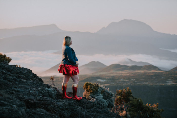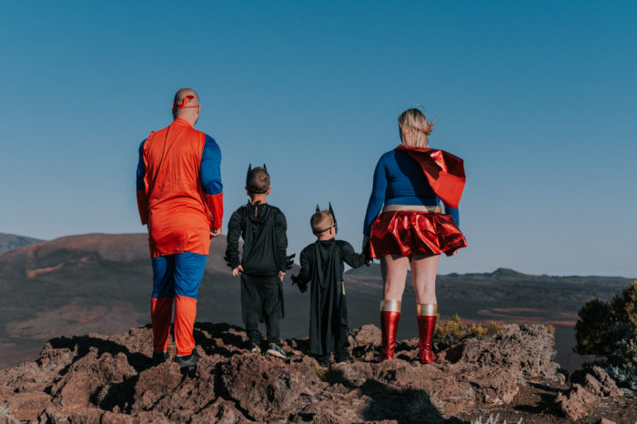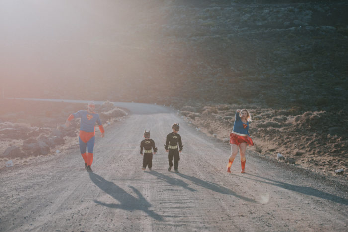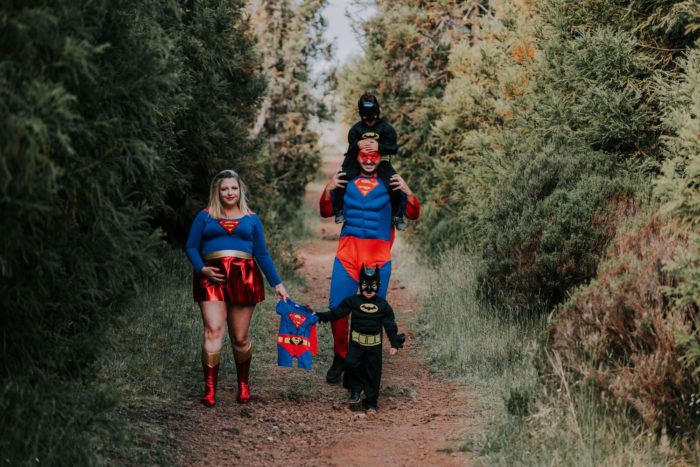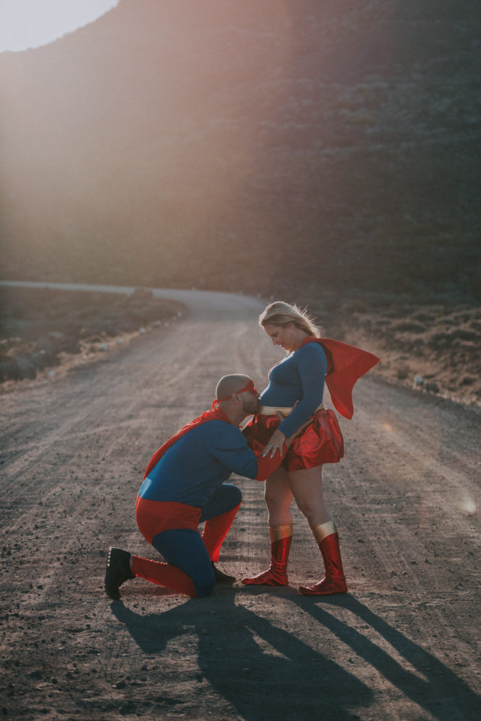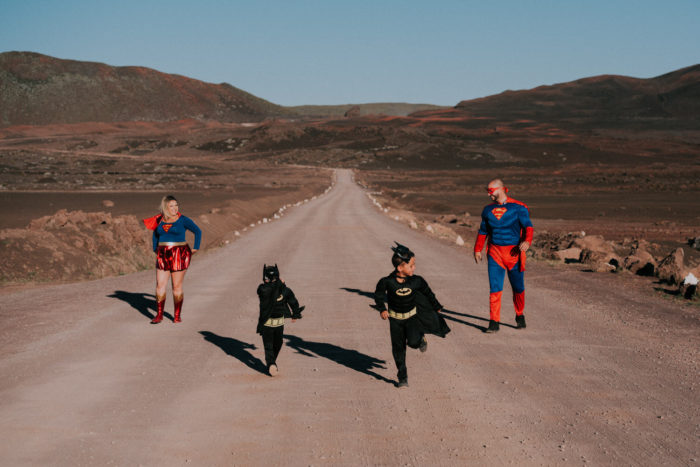 Arrivés sur la fameuse plaine des sables au décor lunaire, marsien, la séance grossesse en famille et le thème super héros pris tout son sens!